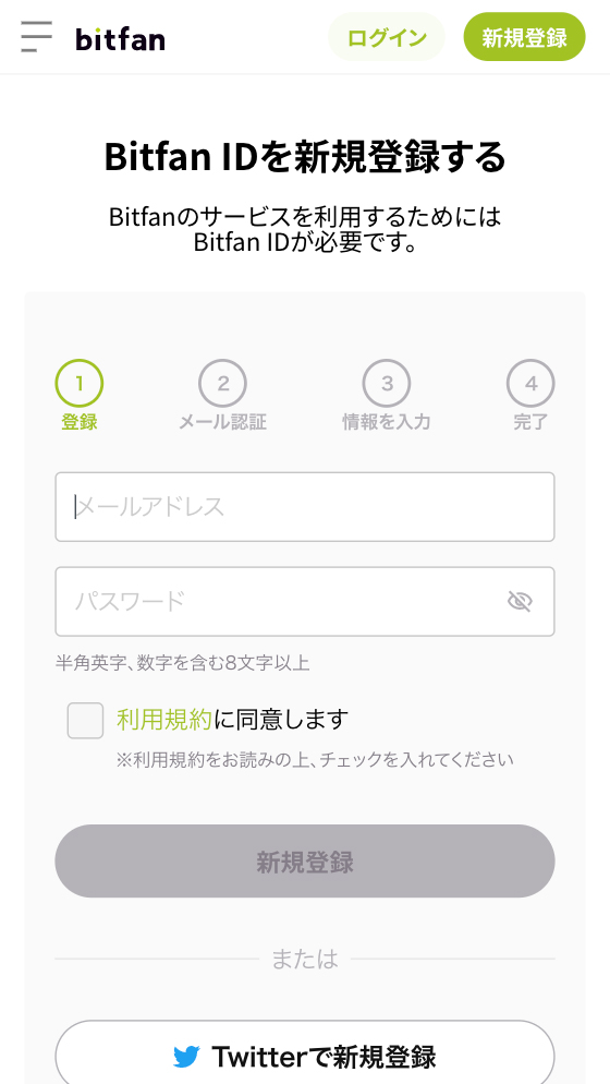 Bitfan IDの新規登録はこちらから